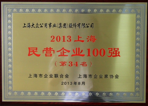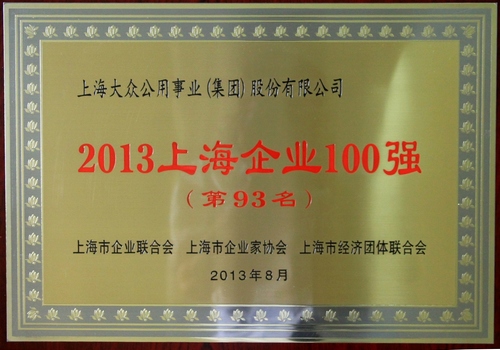 大眾公用入圍2013上海百強(qiáng)企業(yè)