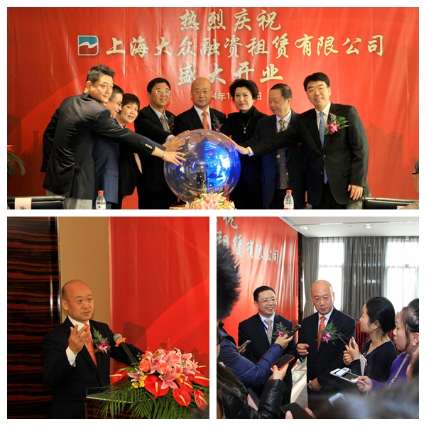 在大眾集團(tuán)成立26周年之際,大眾集團(tuán)旗下上海大眾融資租賃有限公司於2014年12月24日上午開(kāi)業(yè)運(yùn)營(yíng)。上海大眾融資租賃有限公司是由上海大眾公用事業(yè)(集團(tuán))股份有限公司和大眾交通(集團(tuán))股份有限公司兩家上市公司共同出資設(shè)立的中外合資融資租賃公司,註冊(cè)資本人民幣5億元,公司註冊(cè)在中國(guó)(上海)自由貿(mào)易試驗(yàn)區(qū)。