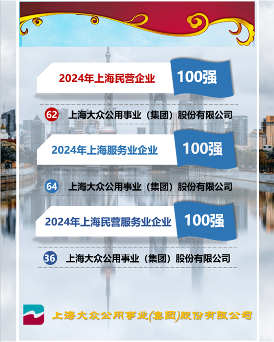 大眾公用再登2024上海百?gòu)?qiáng)企業(yè)榜,排名均有所提升