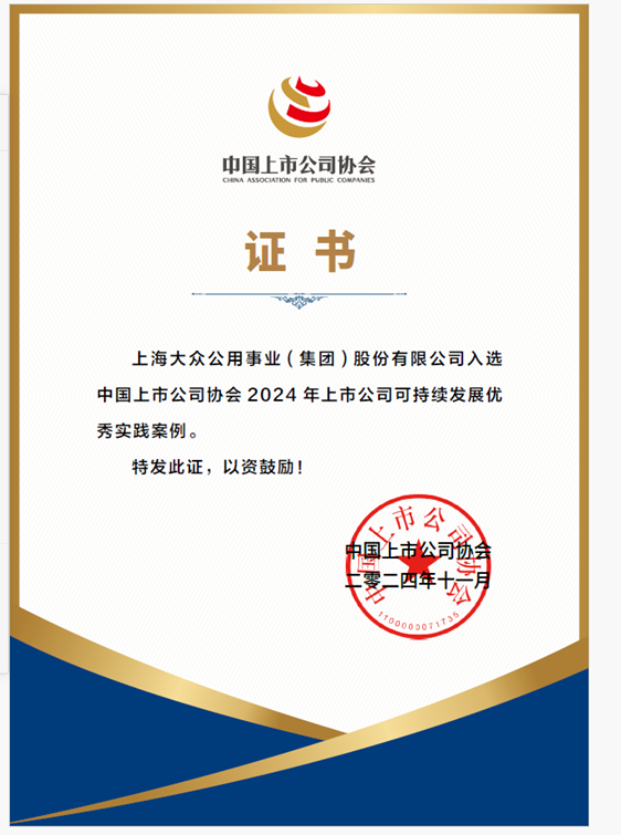 大眾公用榮獲2024上市公司可持續(xù)發(fā)展優(yōu)秀實踐案例