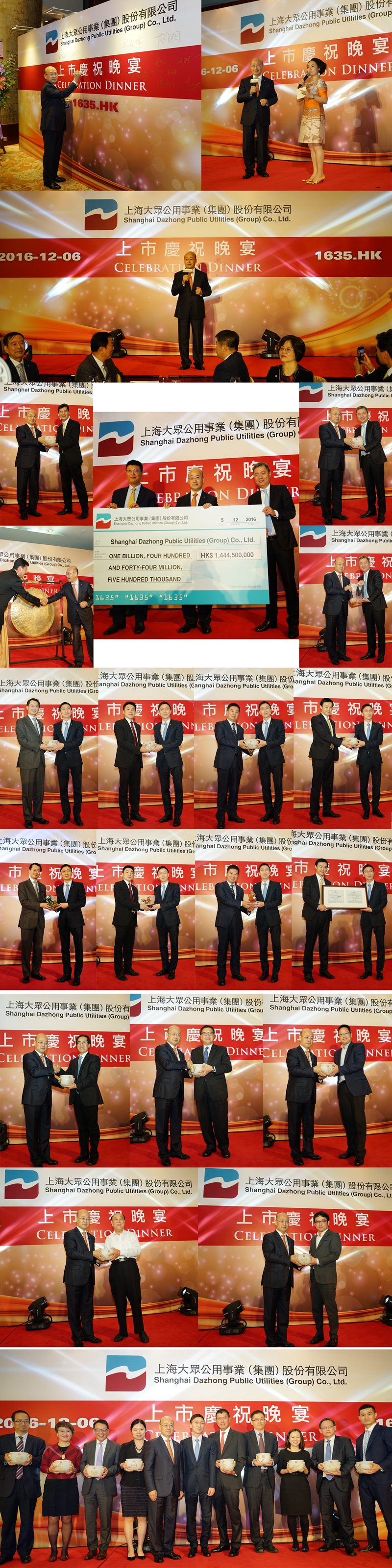 On December 5 2016, Shanghai Dazhong Public Utilities (Group) Co., Ltd.’s (DZUG) H shares were officially listed on the main board of the Stock Exchange of Hong Kong. At 9:30am December 6, DZUG’s Chairman of the Board Mr. Yang Guoping beat the gong for listing.