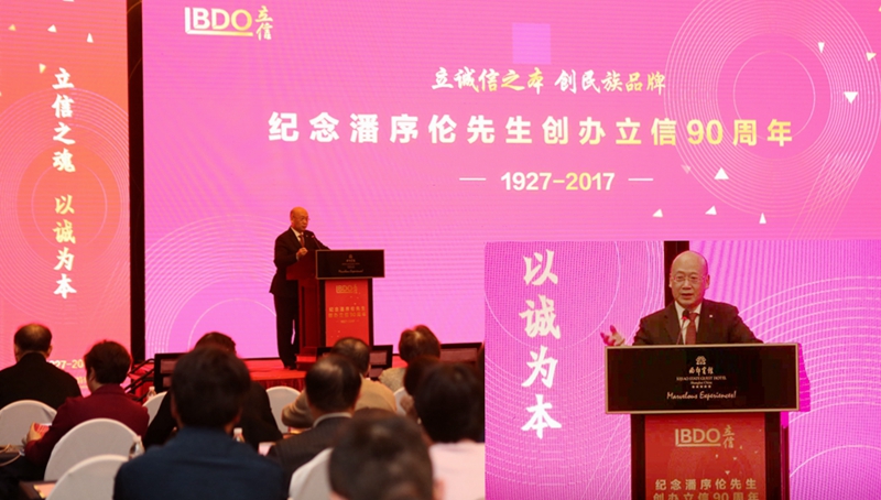 In the afternoon of November 28, 2017, the 90th anniversary of Mr. Pan Xulun’s founding of BDO was held at Xijiao Hotel. Chairman of the China securities regulatory commission Liu Shiyu, Shanghai municipal committee and executive vice mayor of frequency Zhou bo, China association of certified public accountants Feng Shuping, Party secretary and chairman of Shanghai stock exchange Wu Qing attended the anniversary. Chairman Yang Guoping, accompanied by President Liang Jiawei, was invited to attend the ceremony and gave a speech.
