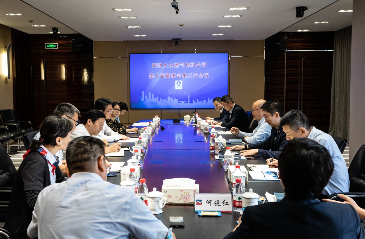 2022年9月24日上午,南通大眾燃氣有限公司在上海大眾大廈21樓第一會議室召開了第七屆董事會第二次會議。大眾公用集團董事長楊國平,執(zhí)行董事、總裁梁嘉瑋出席了會議。會議由集團執(zhí)行董事、南通大眾燃氣董事長汪寶平主持,南通城市建設(shè)集團董事長張建中、副總經(jīng)理宋蕓蕓、南通市市政和園林局黨組成員徐訓(xùn)國,及南通大眾燃氣全體董監(jiān)事成員出席了會議。