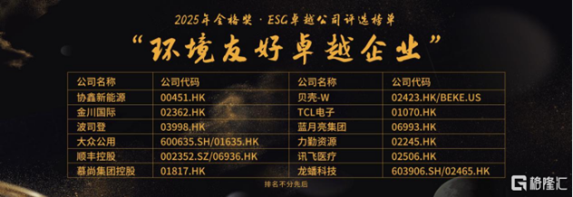 7月4日,在“格隆匯·金格獎”ESG卓越公司評選中大眾公用(600635.SH/01635.HK)等12家企業(yè)榮獲“ESG環(huán)境友好卓越企業(yè)”獎項,同時和10家企業(yè)榮獲“ESG卓越IR團(tuán)隊”獎項。