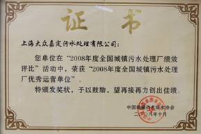 上海大眾嘉定污水處理有限公司總規(guī)劃處理能力為25萬立方米/日,已建成運營日處理能力17.5萬噸,大眾嘉定污水處理有限公司是2008年度全國城鎮(zhèn)污水處理廠優(yōu)秀運營單位。